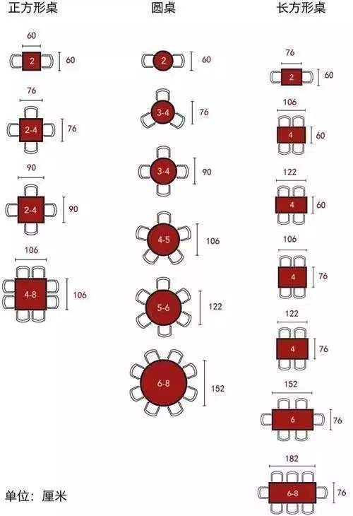 若是長方形戶型,可以選擇方桌;要是餐廳面積充足或偏正方形就可以考慮圓桌。